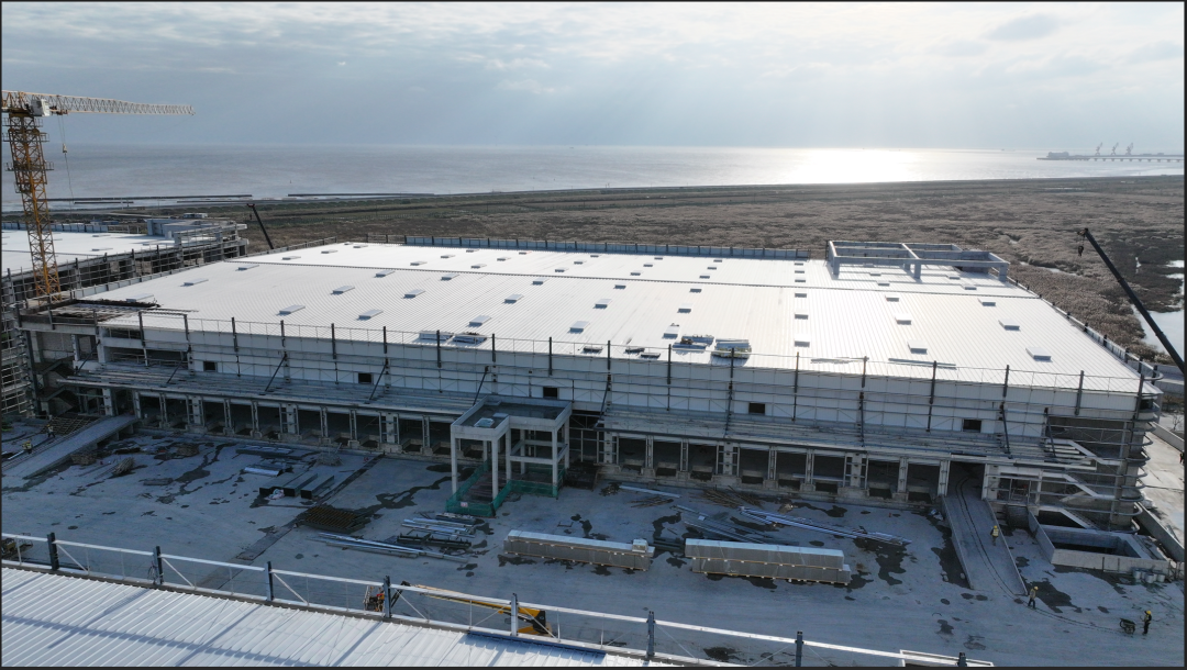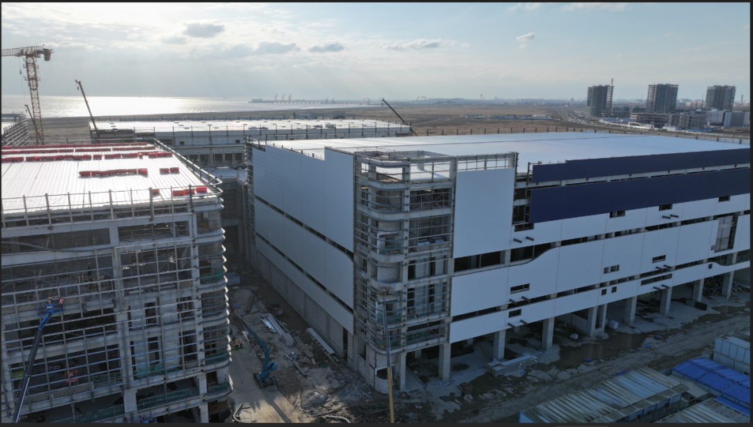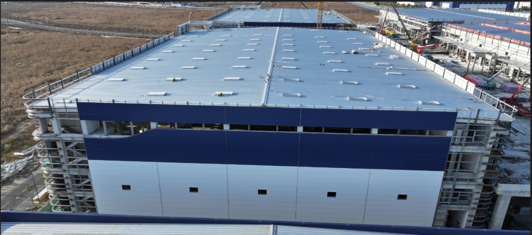 濟寧一建鋼結構工程有限公司承建的金屬屋面及維護工程,涉及1#-4#物流倉庫、高架立體庫。倉庫跨度80米,屋面標高34.1米,為雙向找坡結構。該項目建設規(guī)模大、工期緊、技術精度要求高、工況復雜,自項目開始施工。公司對現(xiàn)場管理嚴格要求,積極配合業(yè)主及總包的整體調(diào)配,施工嚴格執(zhí)行施工方案,遵循規(guī)范標準,合理安排人、機、料等,戮力同心將馬士基臨港旗艦倉項目打造成精 品工程、優(yōu) 質(zhì)工程。